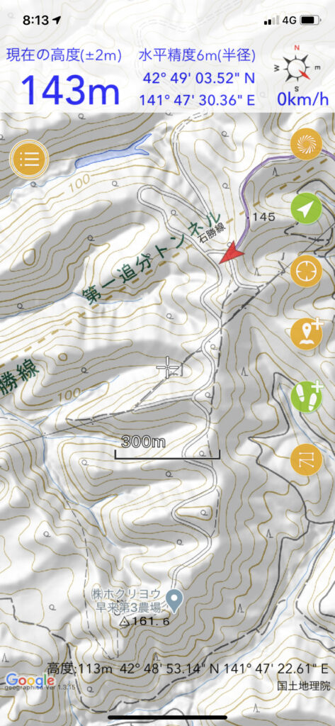 ▼位置:ここから石勝線のトンネル部分へ踏み入ってゆく。