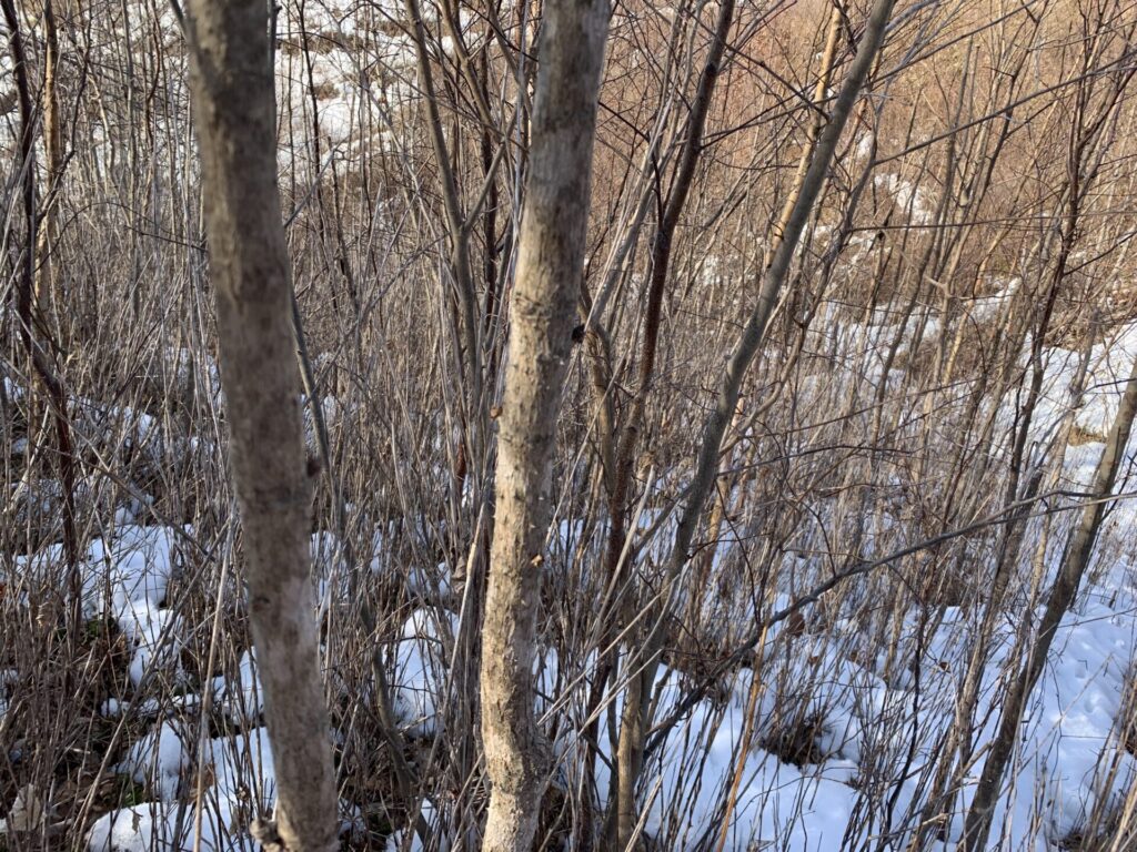 線路脇にある作業道があると思っていたのに、こんな藪とは雪も以外にあるい締まっていないので