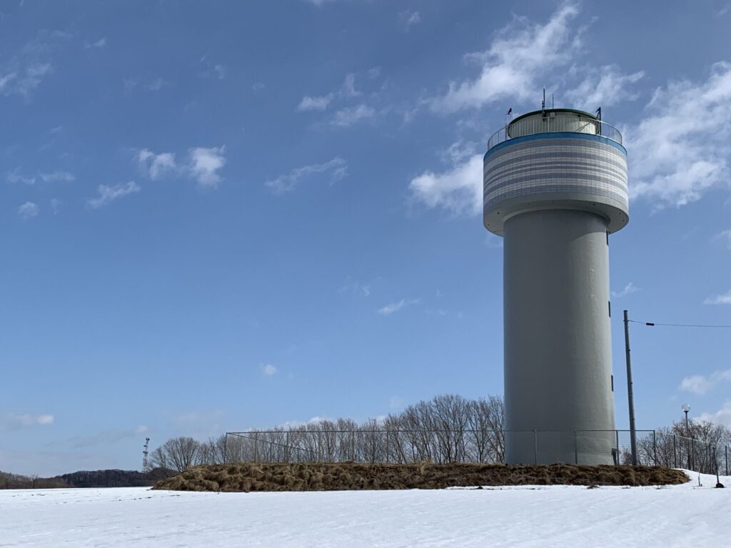 ▼小高い丘の頂点にある塔による。給水塔なのかな???施設の看板も無い。ググっても不明。