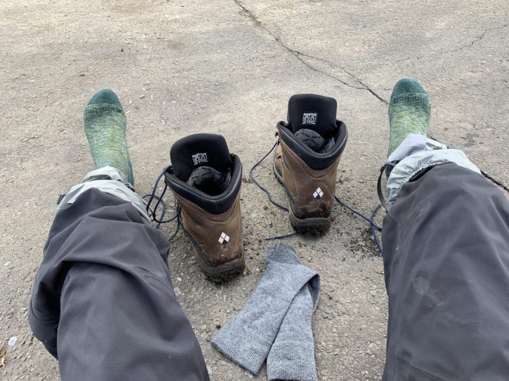 ▼靴下チェンジ! 乾いた靴下を履くと爽快感があるので、いつも予備を持ち歩く。