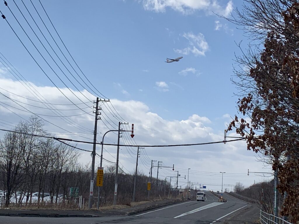 ▼鋭角に飛び立つ飛行機が空港が近いことを示す。