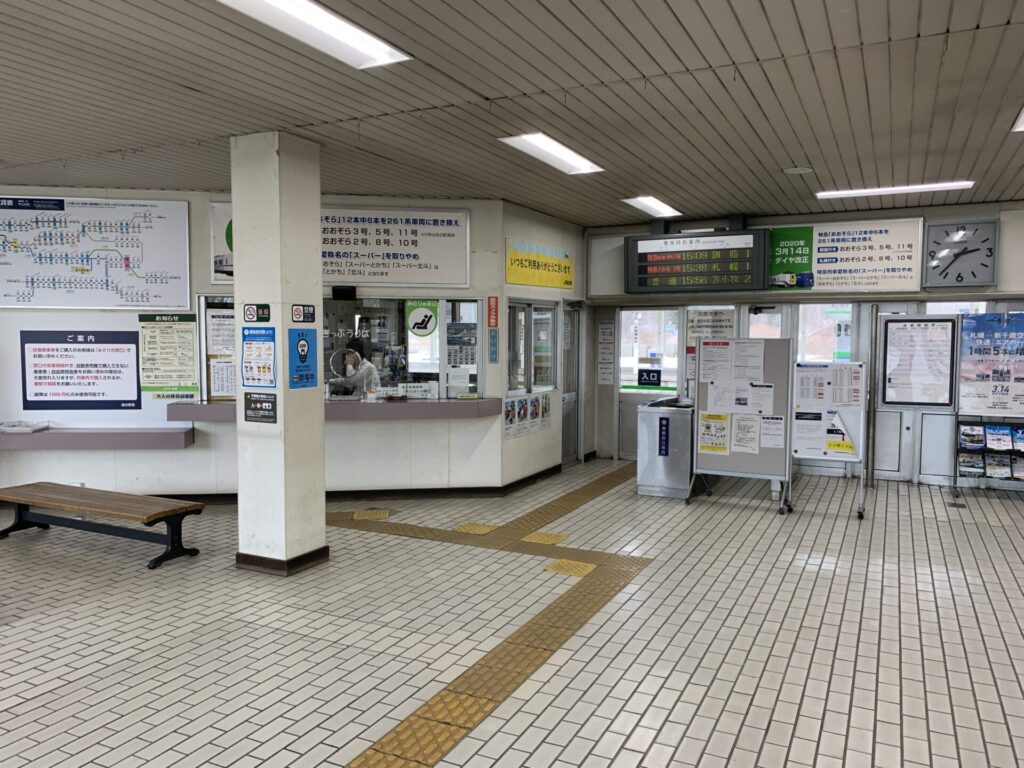 ▼位置:14時16分の追分行き普通列車まで待ち時間が1時間以上ある。