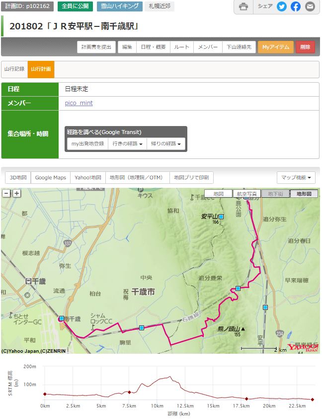 当初は、安平駅から南千歳駅まで石勝線のラインを歩く予定だったものを見直して