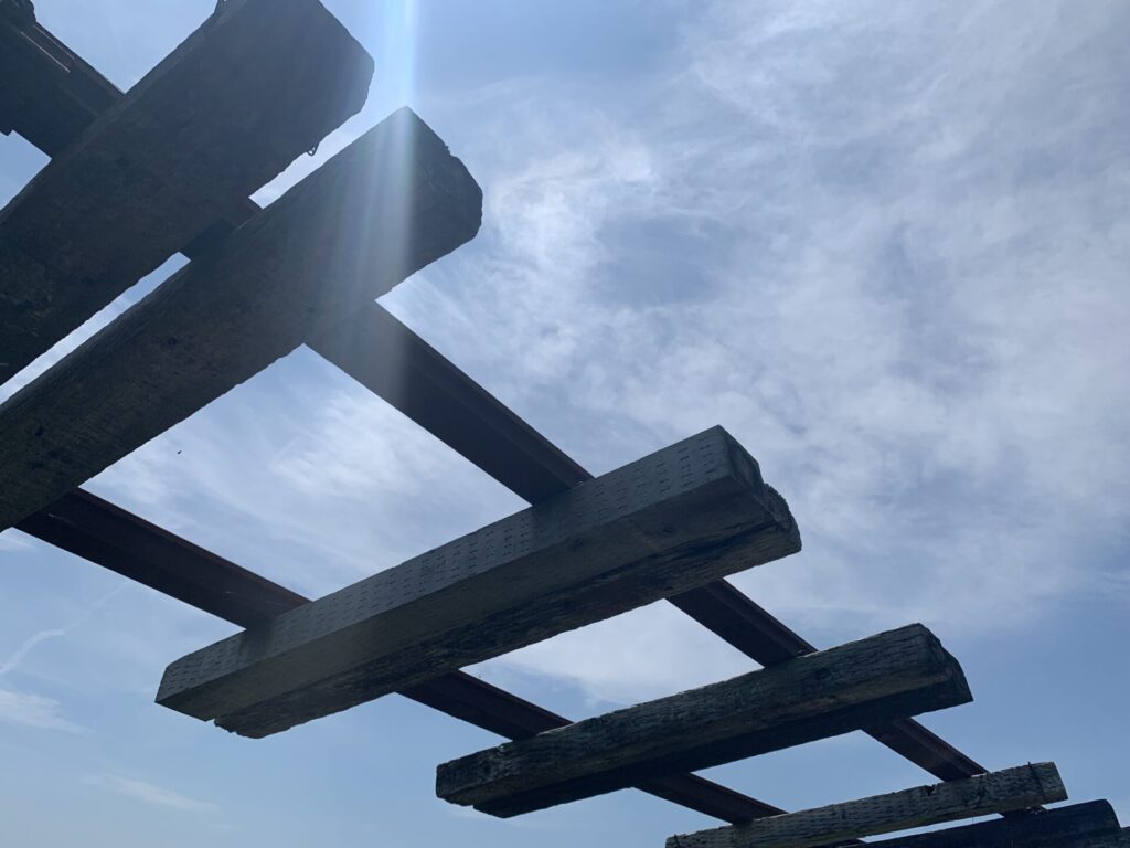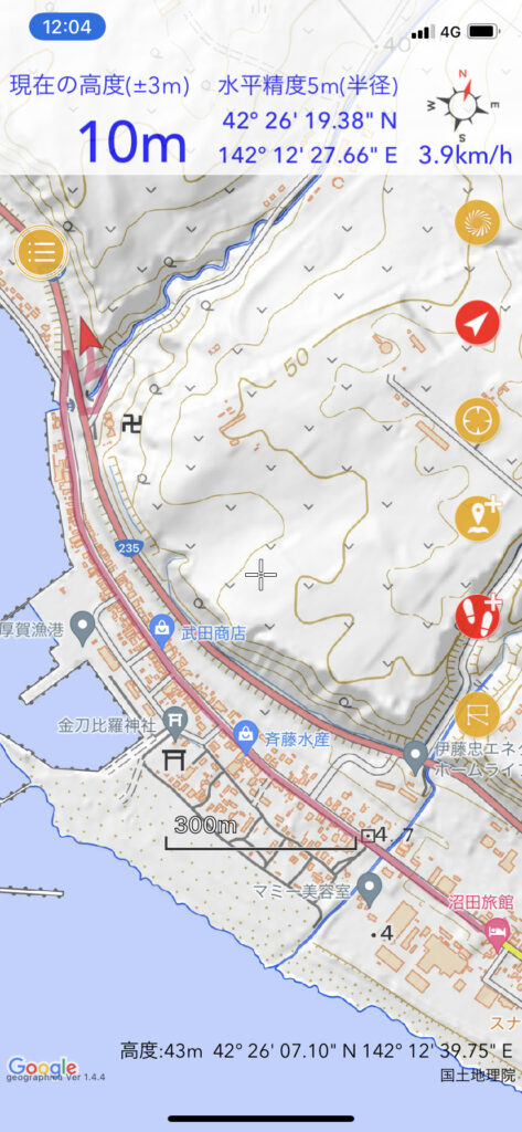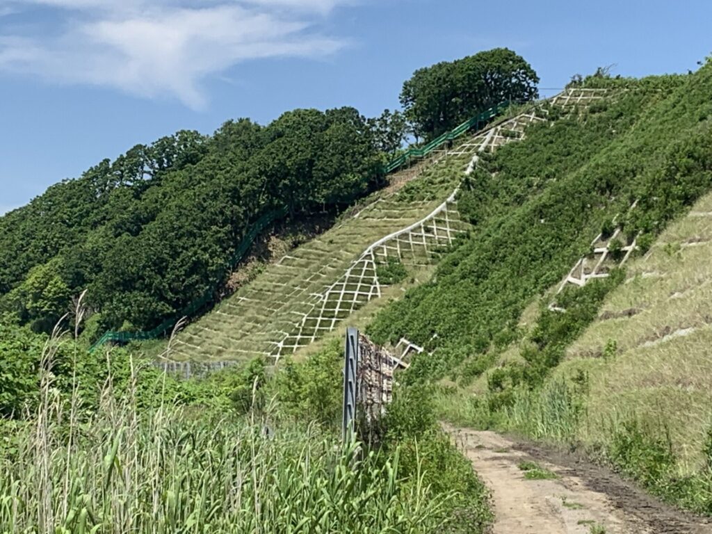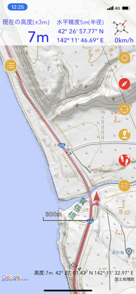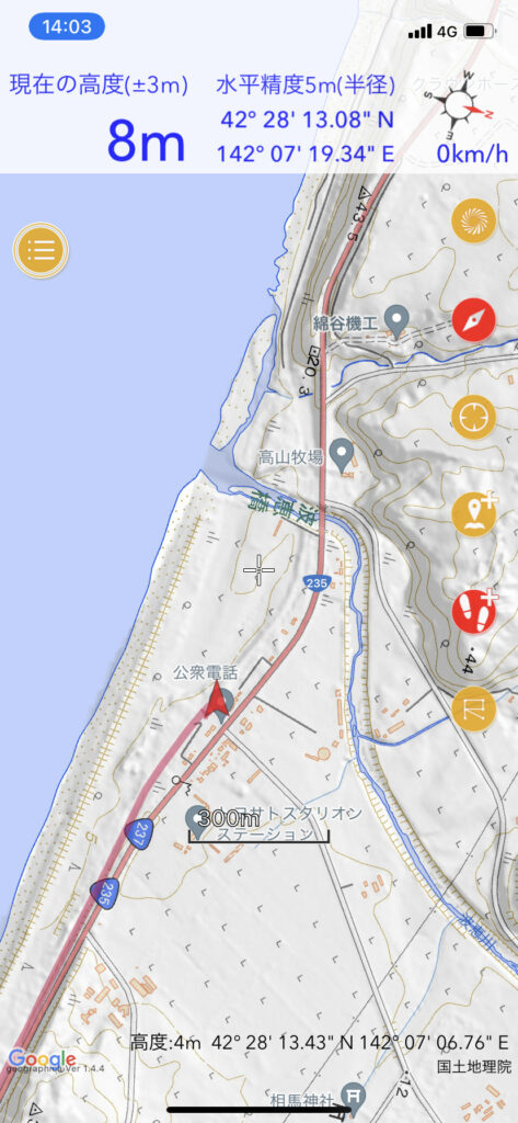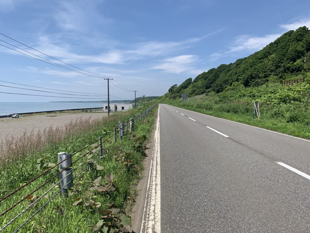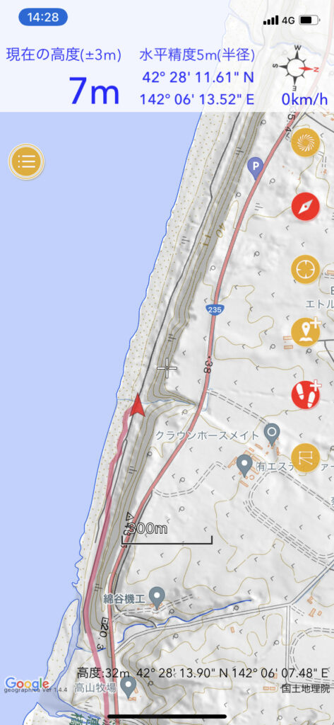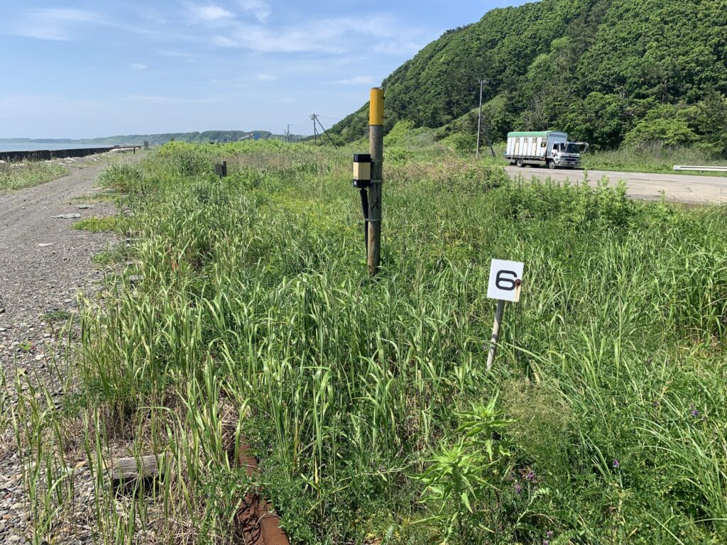 ▼海岸へ向かう 海岸擁壁の天端を進む。