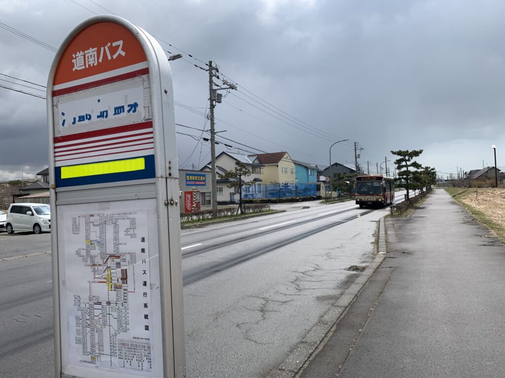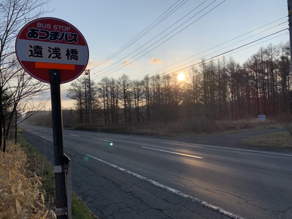 ▼厚真バスの停留所「遠浅橋」