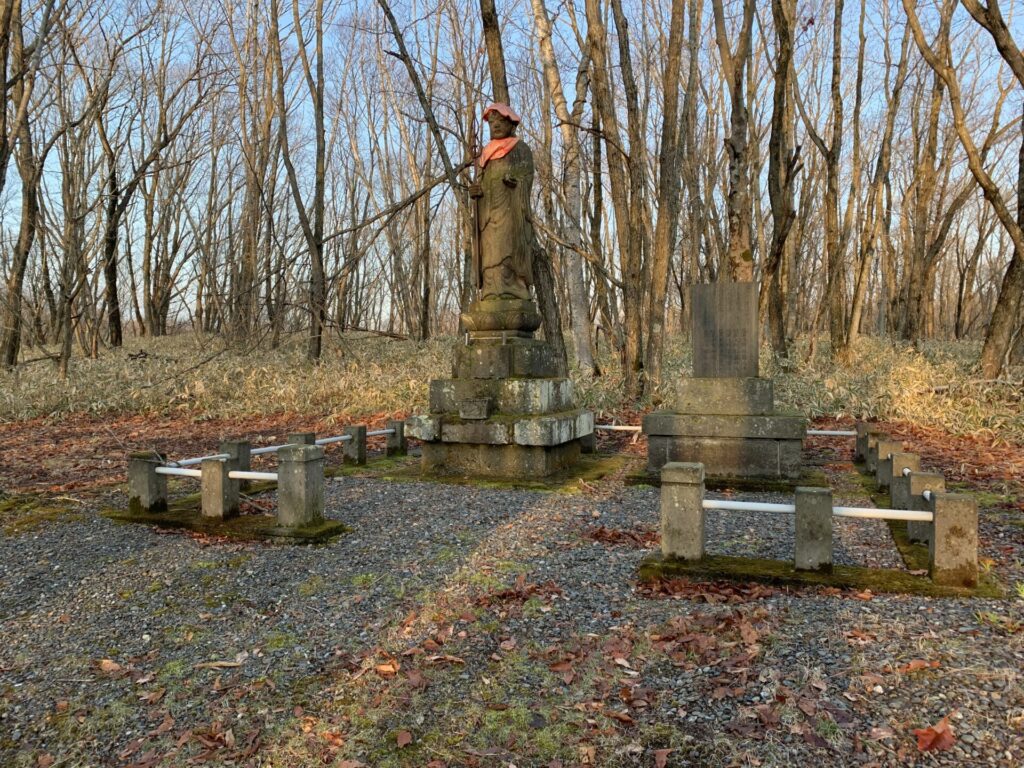 ▼国道から300mほど入ると慰霊碑がある。