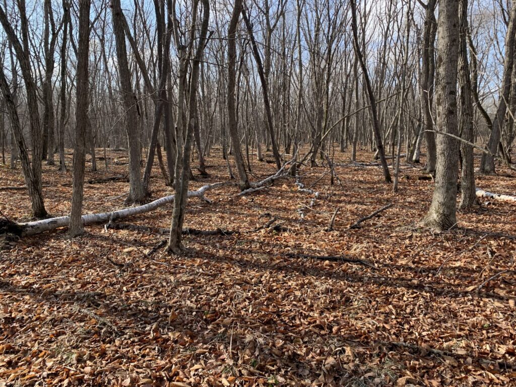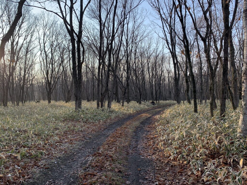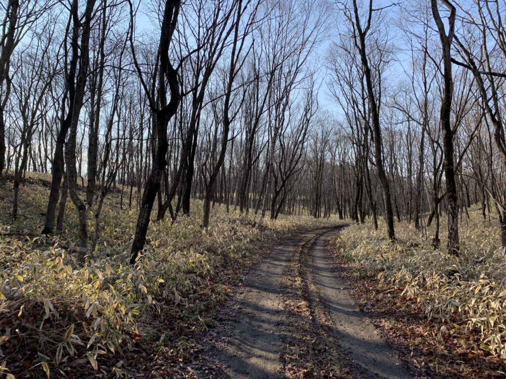 ▼下草がなくてスッキリ。もっとも歩きやすい時期だ!