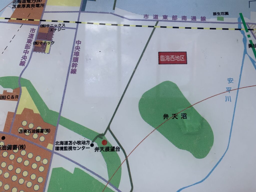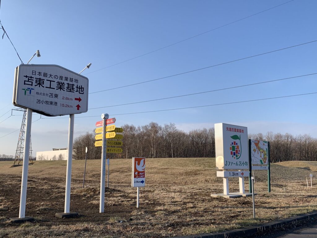 ▼振り返り、苫小牧東港区のキリンと石炭火力発電所