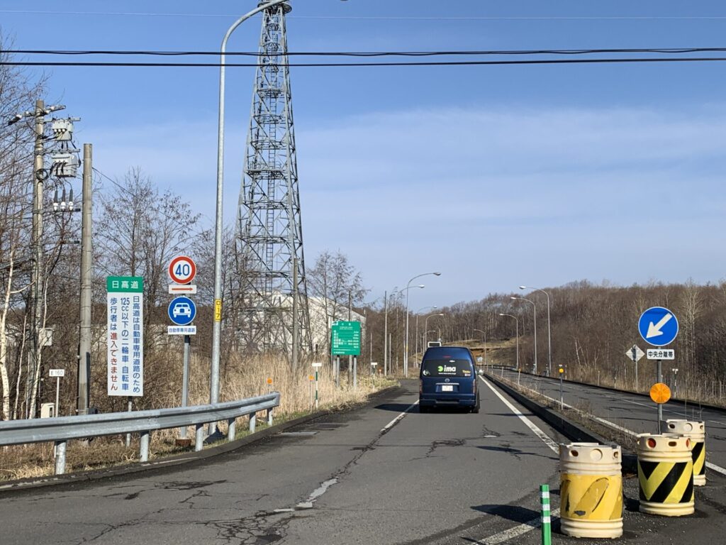 ▼ここからは、自動車専用道区域のため歩行者は立ち入ることが出来ない。