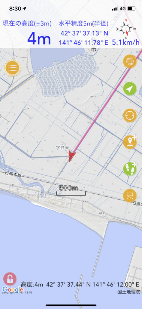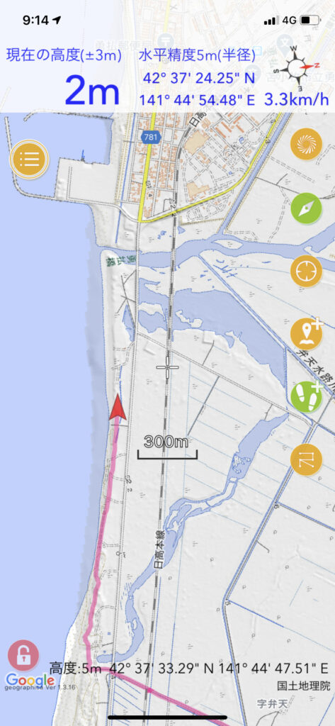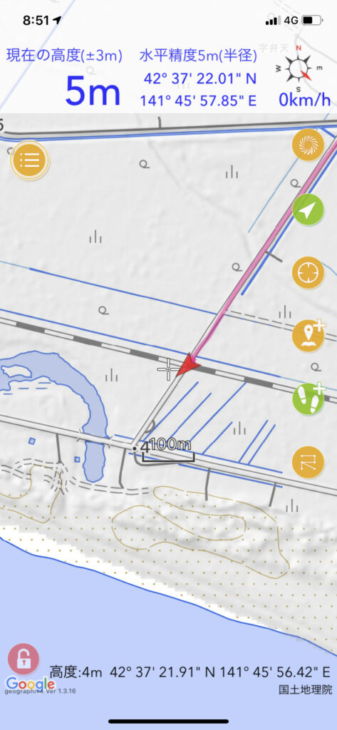 ▼海岸まで5kmの直線