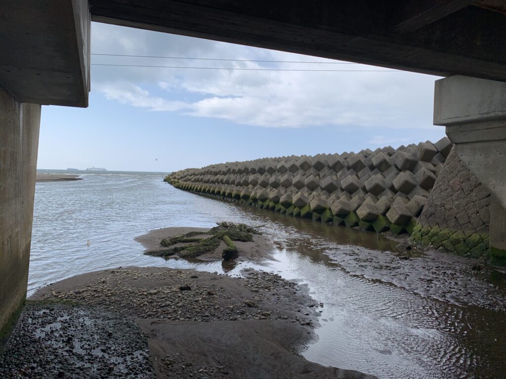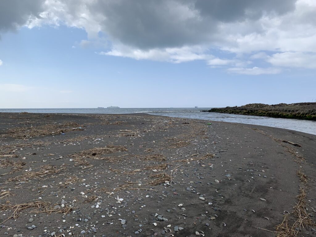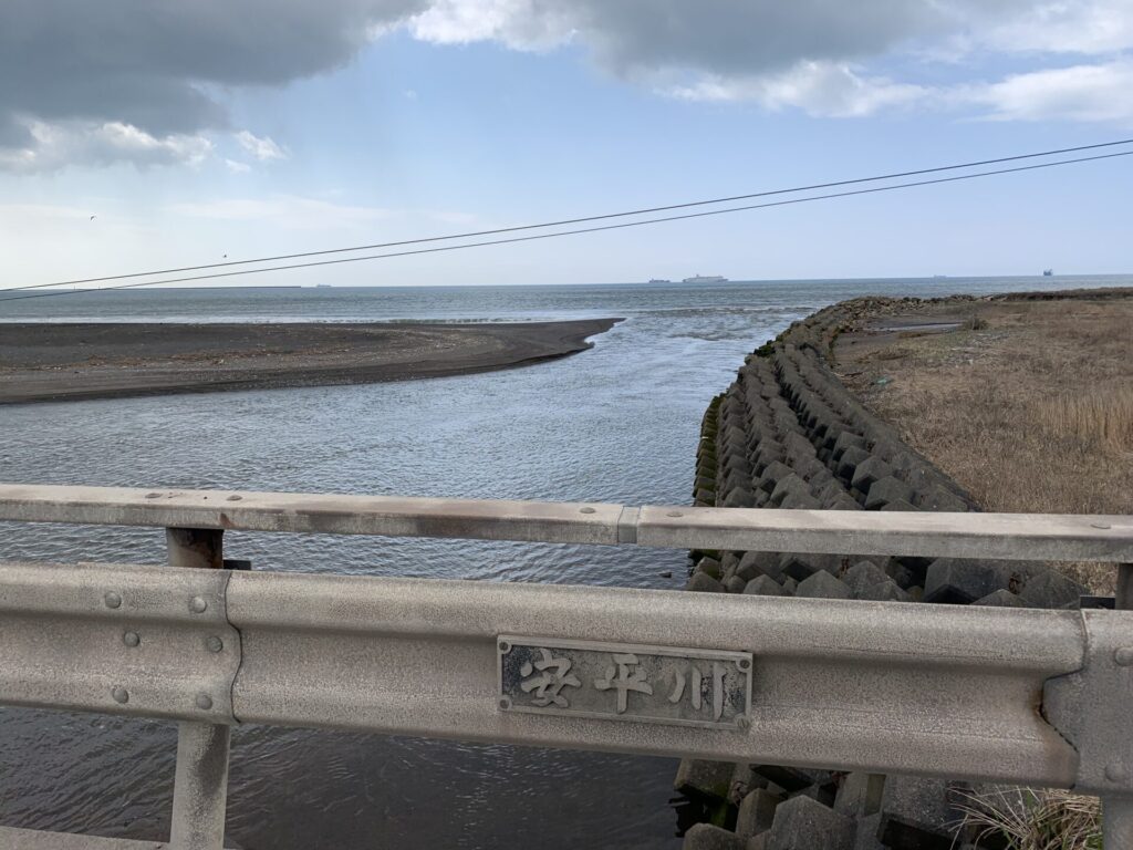 ▼安平川(地元民は勇払川の河口と思っているが…)の河口が見えた。