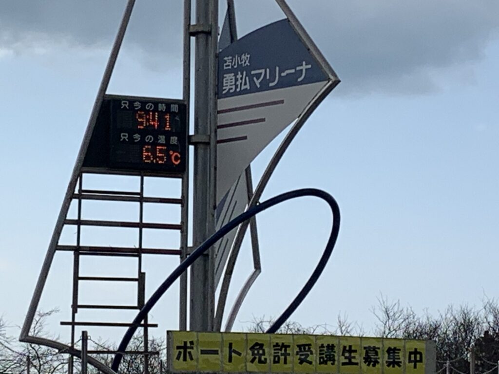 ▼勇払マリーナ入口 気温は6.5℃