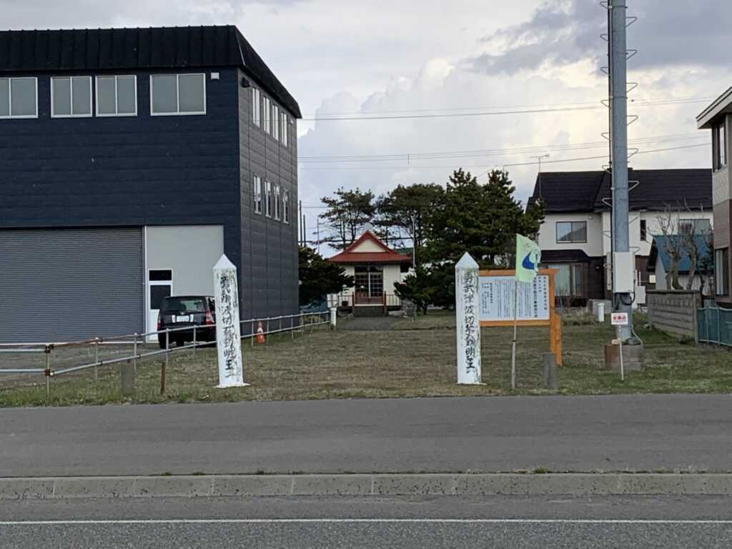 ▼波切不動産の神社。勇払会所跡。