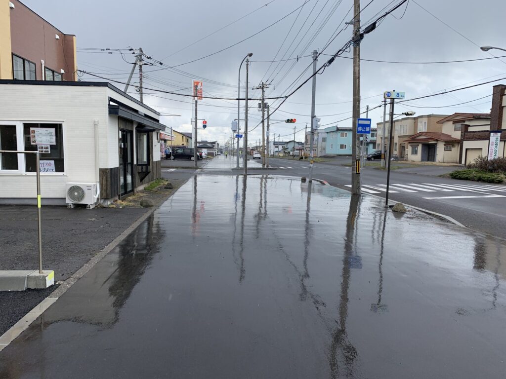 ▼当初予定通り11:16の列車でいいかなと思い、勇払市街を散歩しようかと思った途端、大粒で冷たい雨が降り出した!