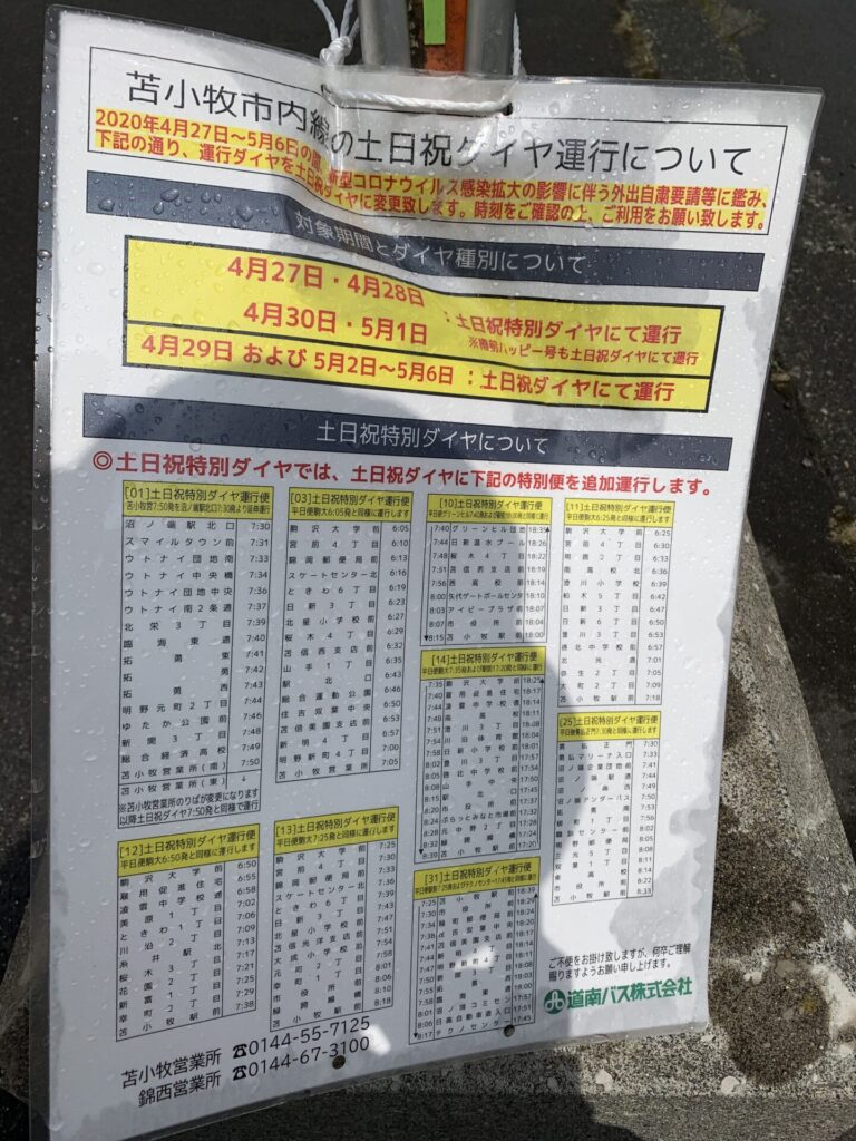 ▼なんだかバスが来ないなー。バス停の張紙に気づく。