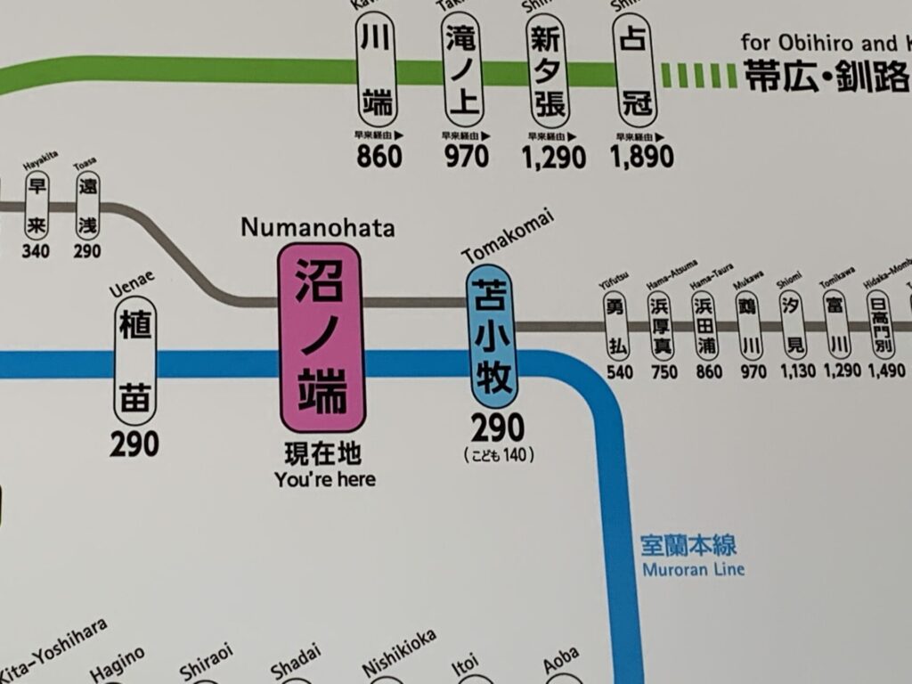 ▼勇払駅からJRを使わず、道南バスで沼ノ端駅まで移動し、10:14の千歳線に乗車がいいかなと考えたが、沼ノ端駅から植苗駅まで780円は異常に高い運賃なのに気づいた。