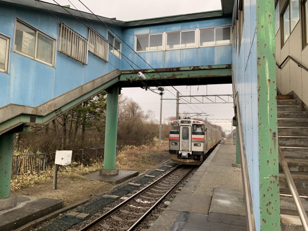 南千歳まで特急で行き普通列車で植苗駅まで引き返す経路だった。