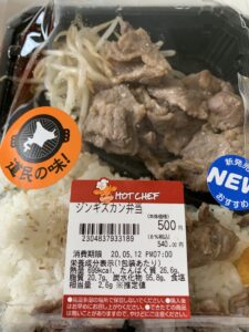 今日は出勤日 2020 5/18 日常2 2020年5月18日2025年7月21日 最近、曜日の感覚がない。多分、きょうは出勤日だろうと思い車を走らせる。 日常2 セイコーマート「ジンギスカン定食」 今日の在宅ワーク