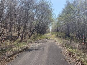 ▼コムカラ峠を道道で下り途中からキウス周堤墓群へ向かう近道を探す。