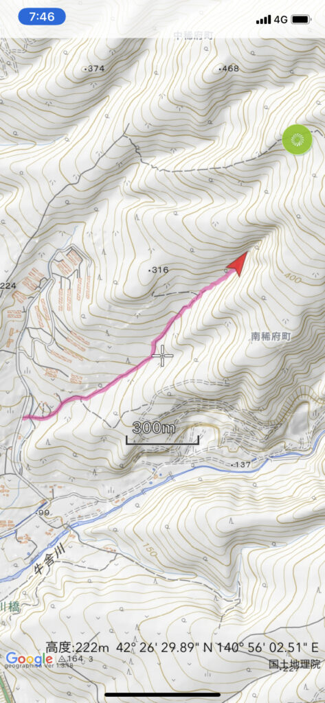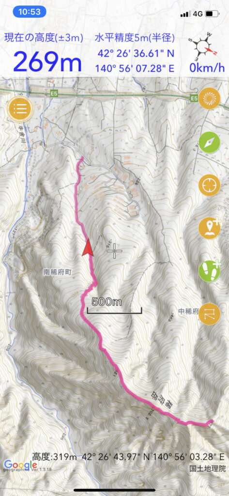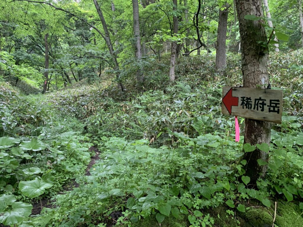 ▼一般国道37号を進み、稀府駅前通りとの交差で右に曲がり高速をくぐるBOXを越えたあたりに登山口がある。