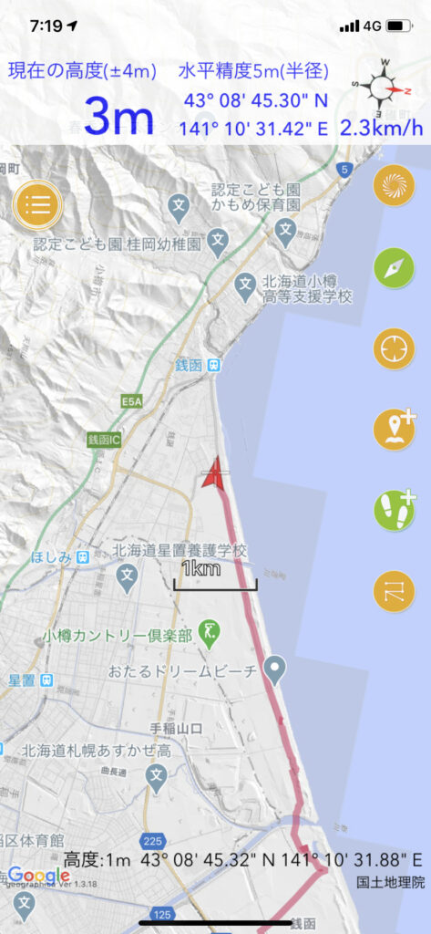 ▼位置:銭函駅まで、あと2.5kmぐらい