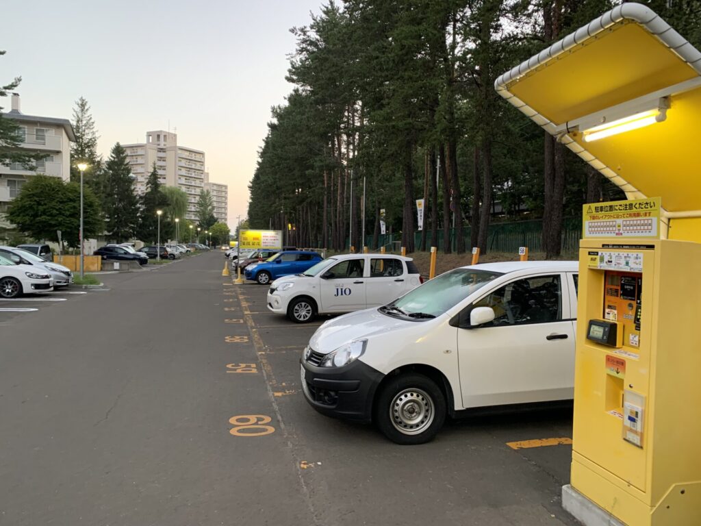 ▼地下鉄南北線真駒内駅前のタイムズの駐車場にいれた。