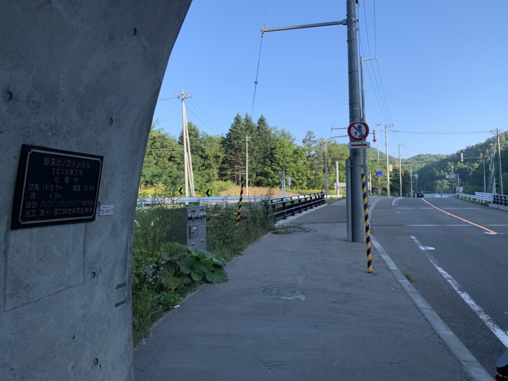 ▼旧道となった小林峠へは左折だが、蟠渓北ノ沢トンネルを歩きたいので、あえて遠回りで直進する。