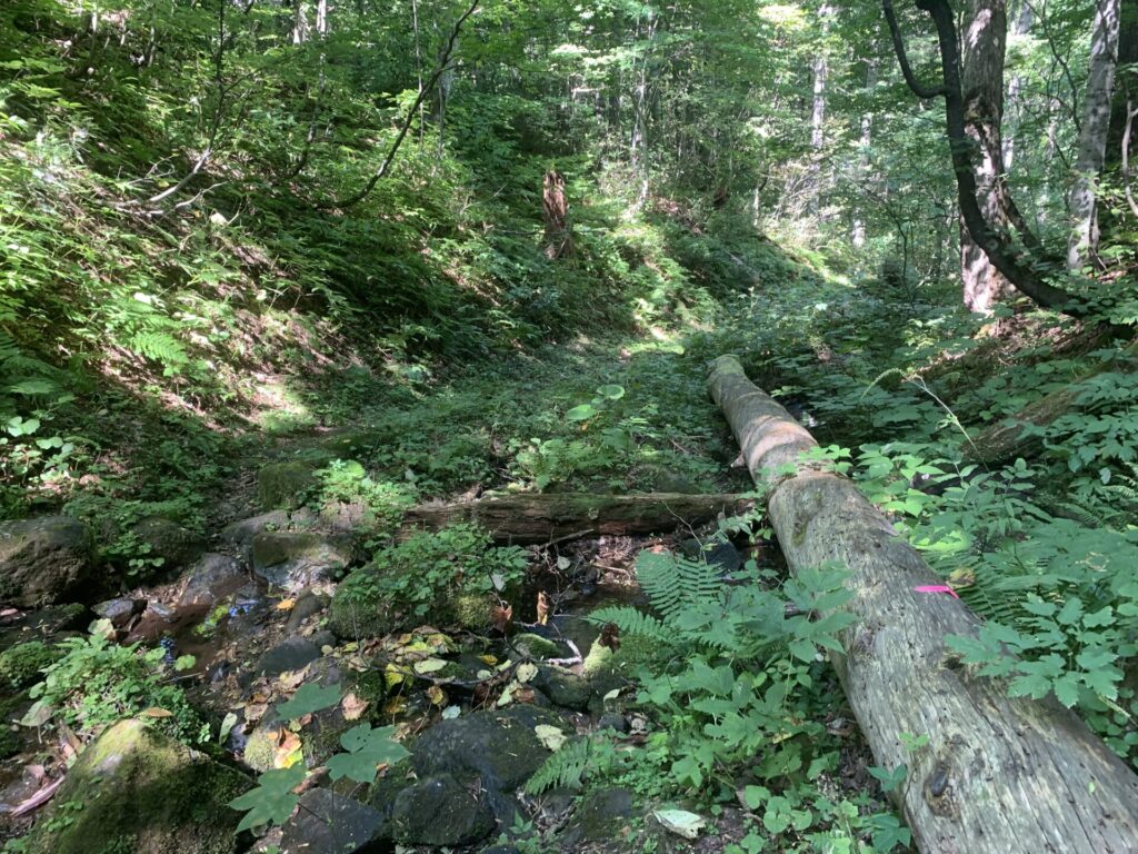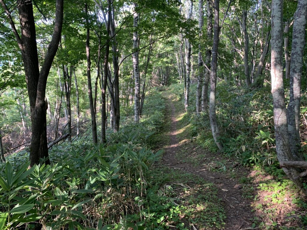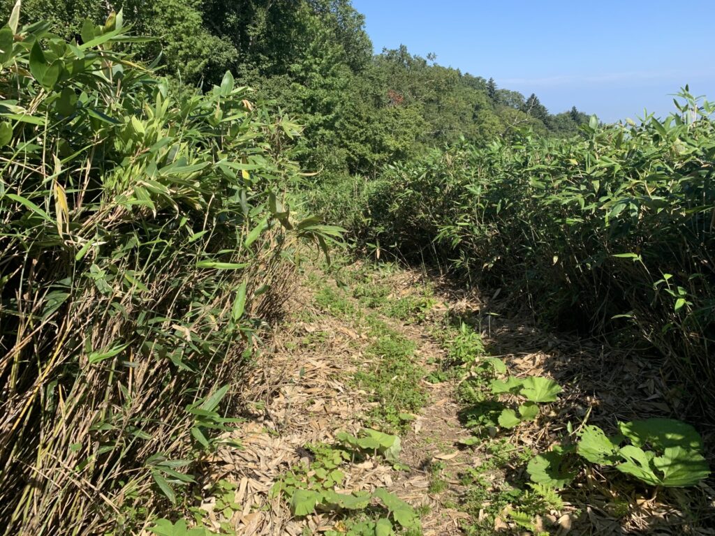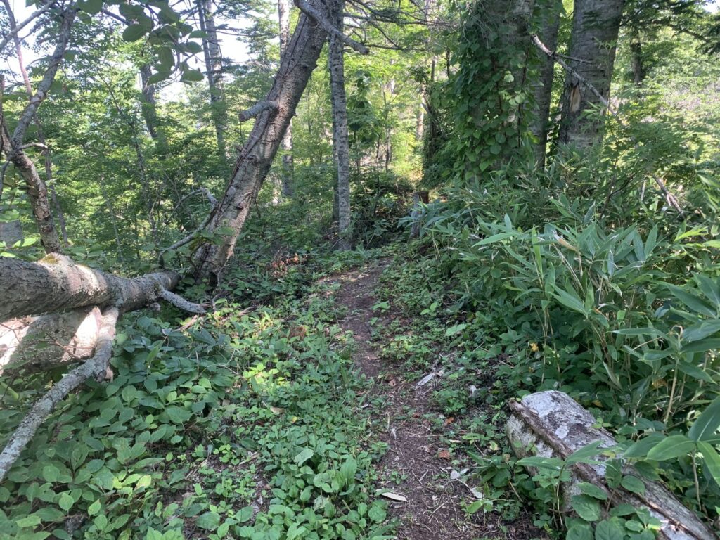 登山道の土砂は露出しておらず、少々湿り気味が好きそうな雑草が繁茂している。