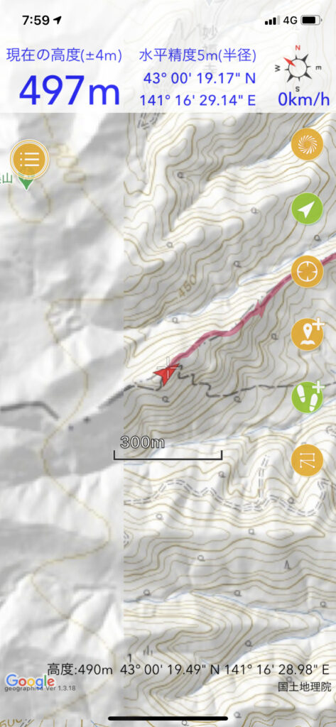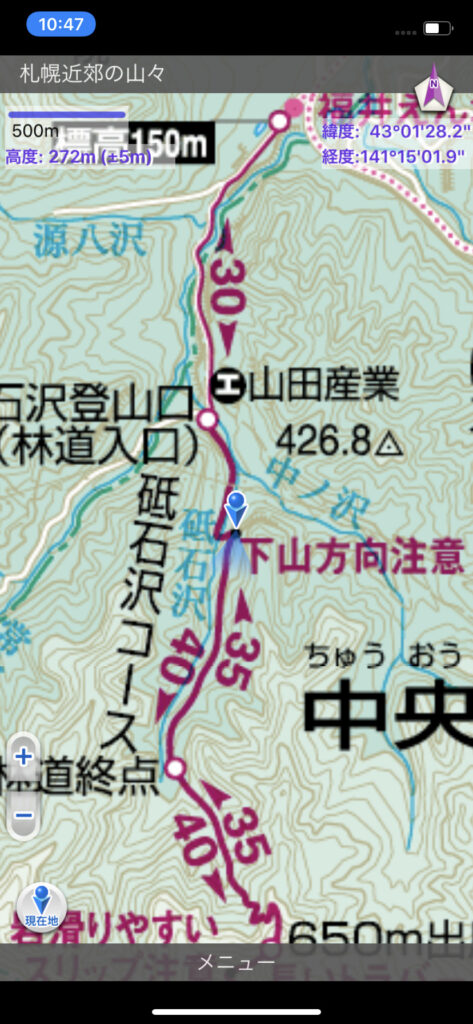 山と高原地図に注意書きが有るが、右に少し行きかけた。左に曲がるのが正解!