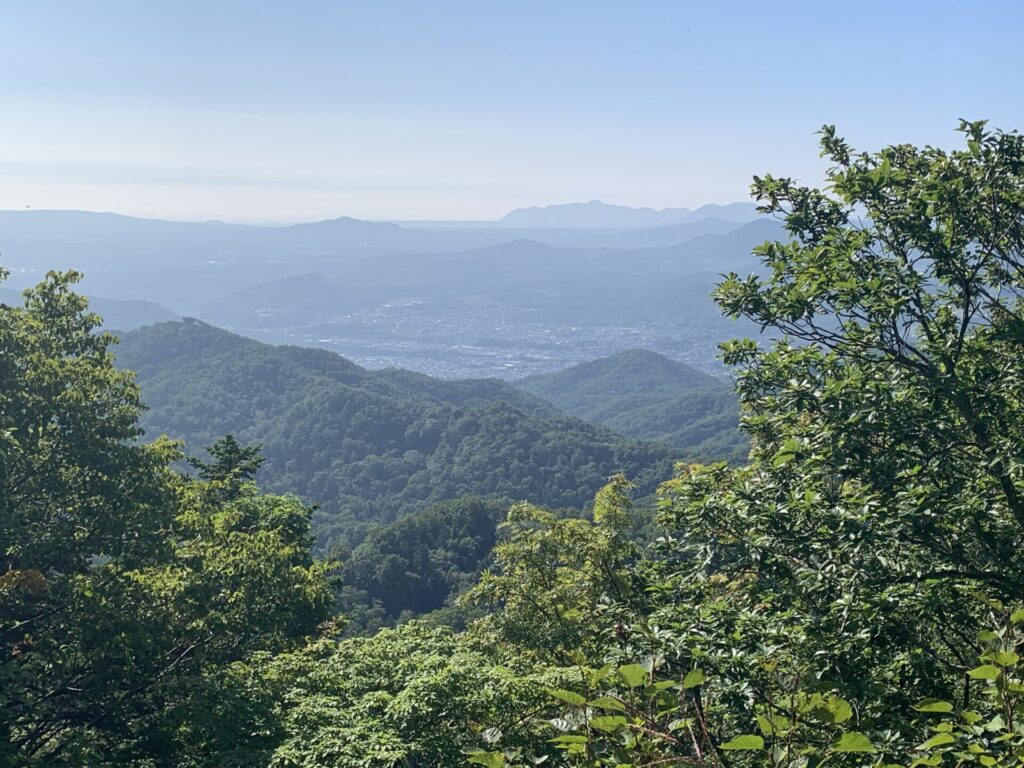 ▼三角山の頂上の手前で眺望が一瞬有る。