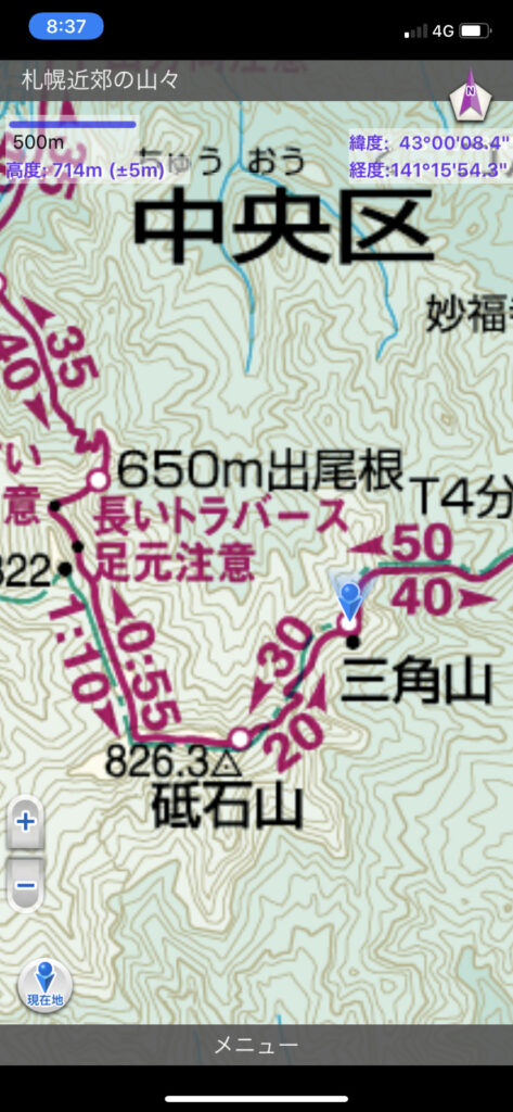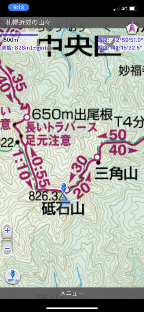 三角山をパスしてゆくトラバーもあるが、もちろん三角山経由で行く。