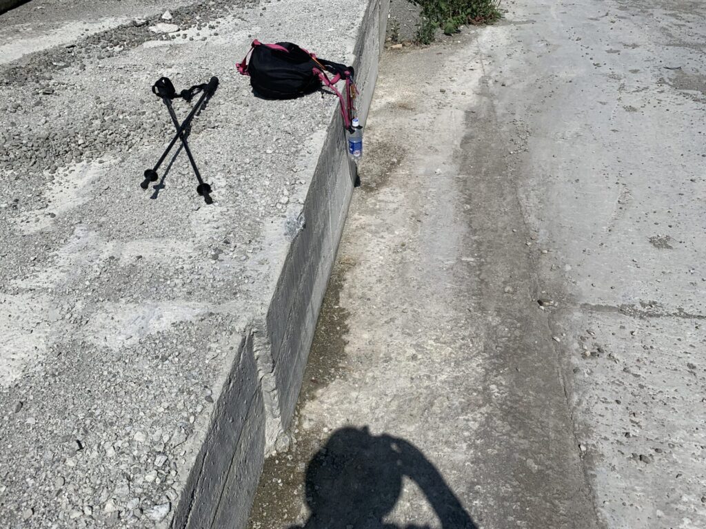 ▼採石場を過ぎたあたりで、下半身も裸になりダニを駆除する。