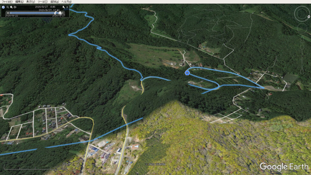 ▼丁度、林道に合流したところで、湿ったインナーの下腹部分を見ると