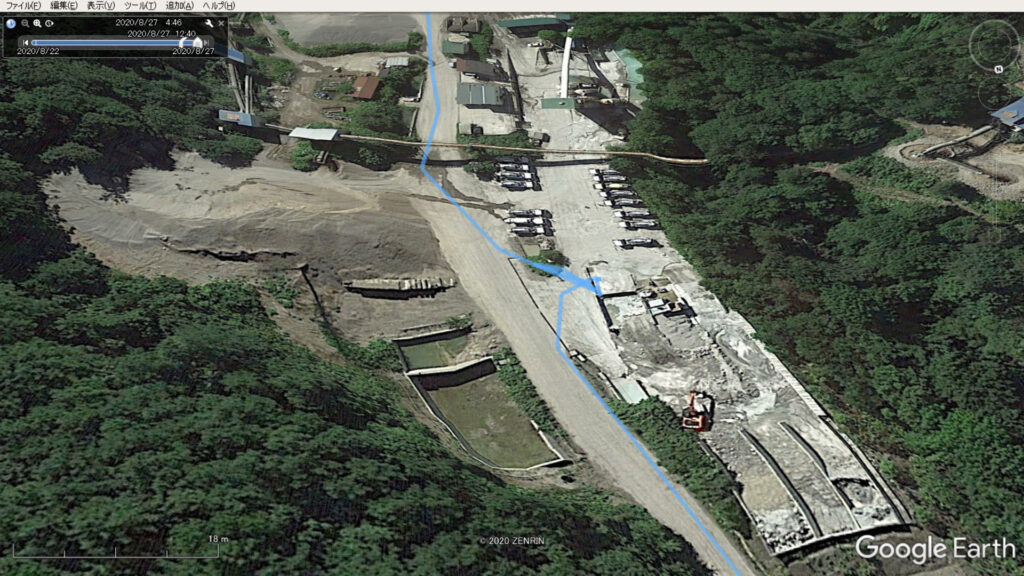 ▼ジェットファインと蟠渓北ノ沢トンネルの坑口(西側)