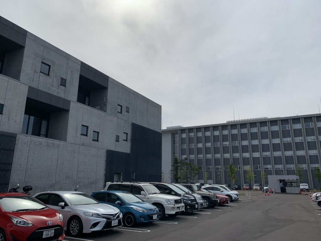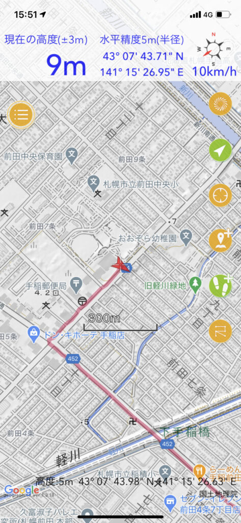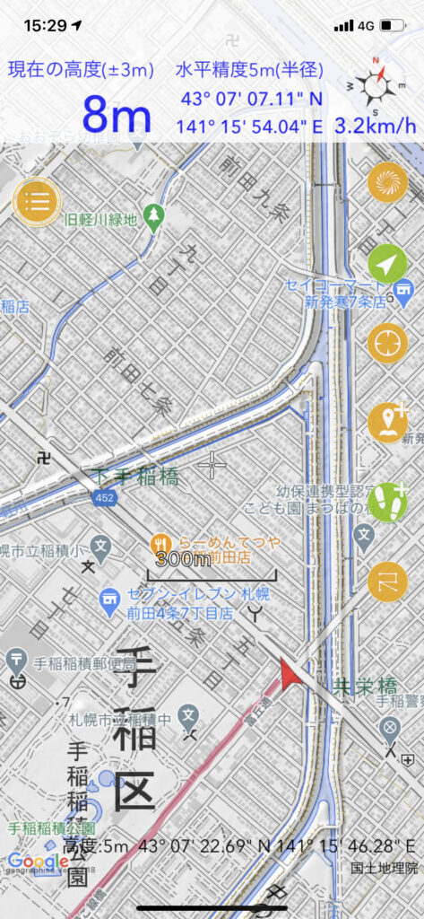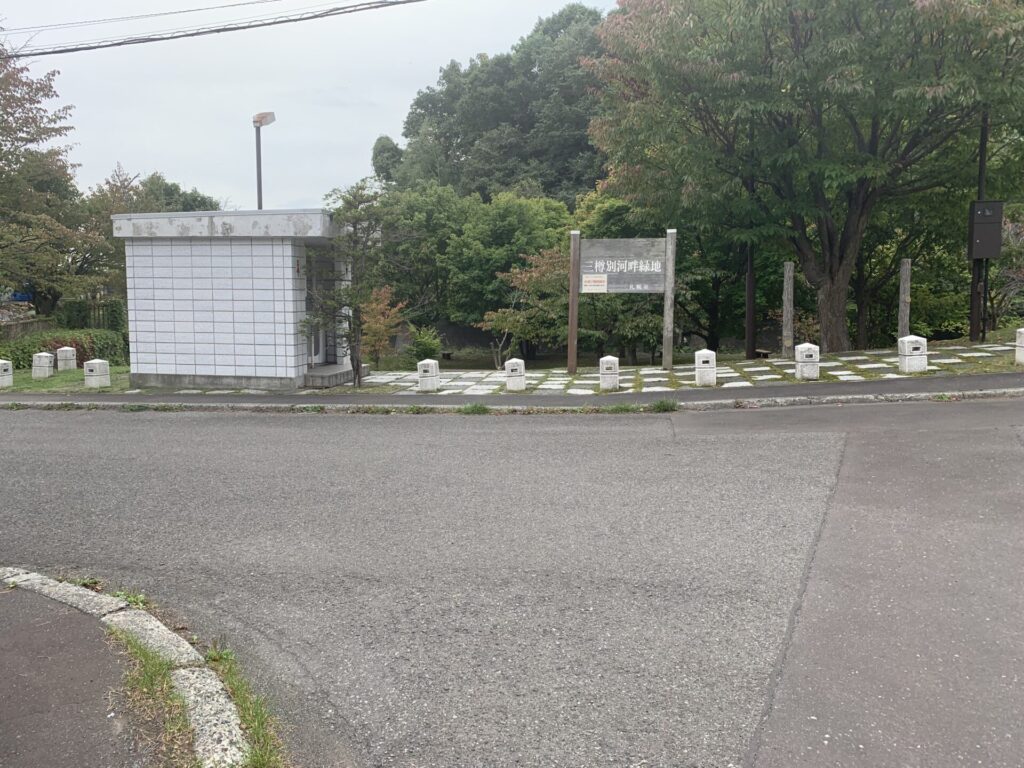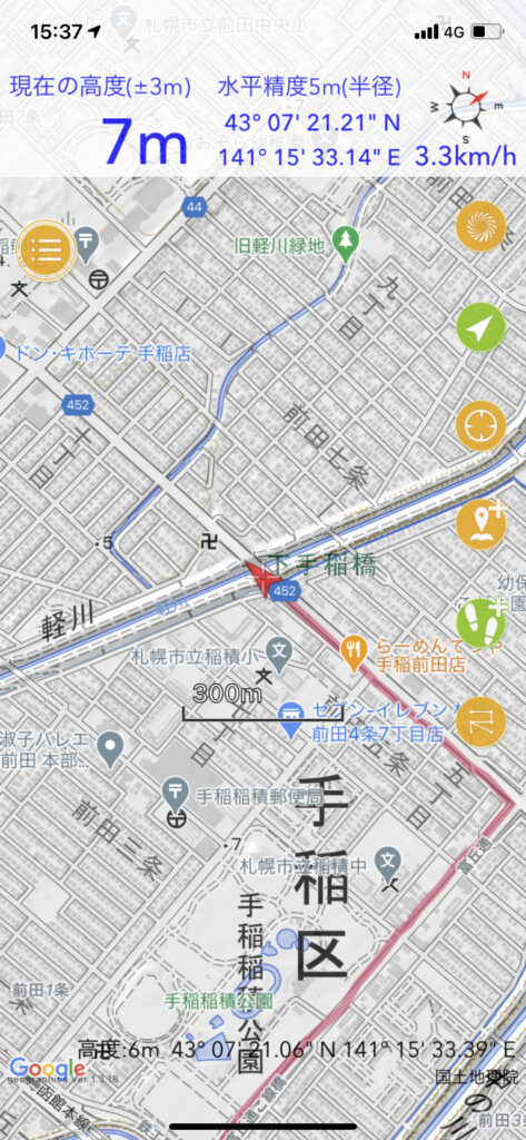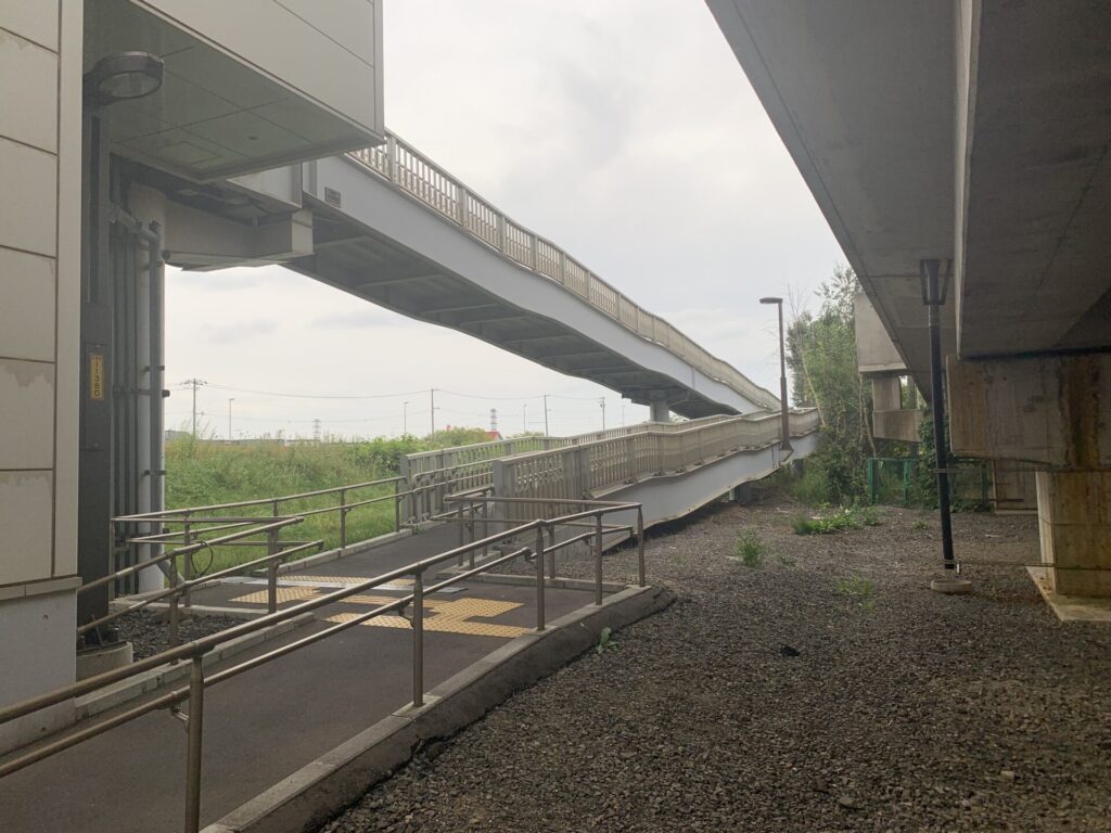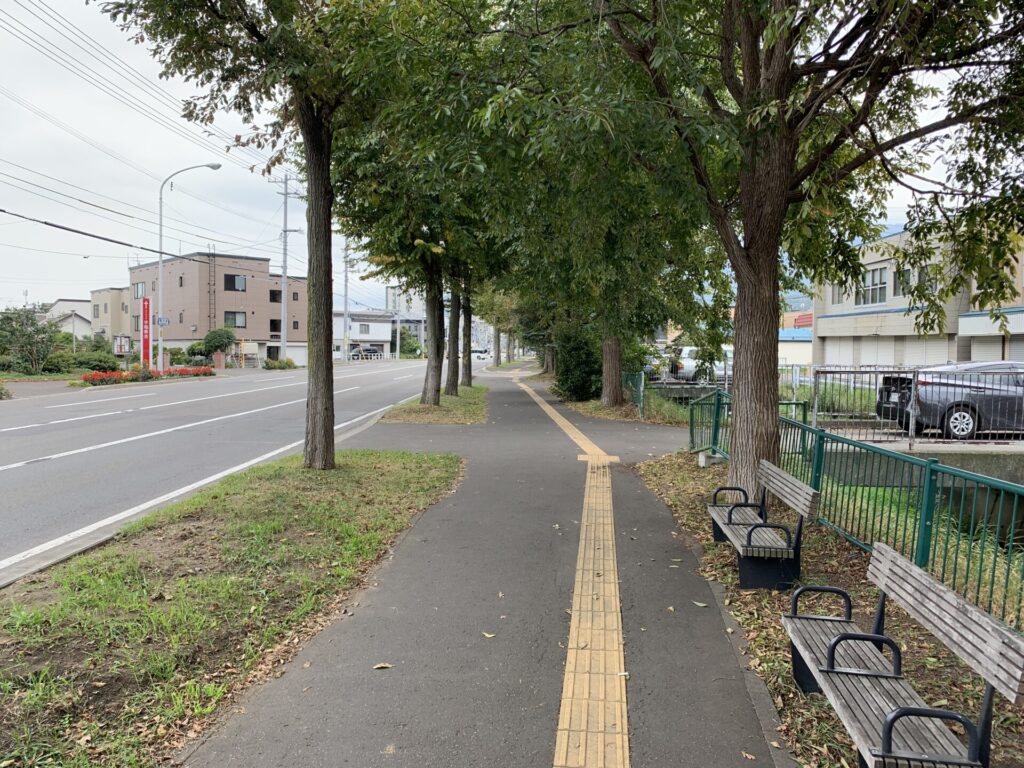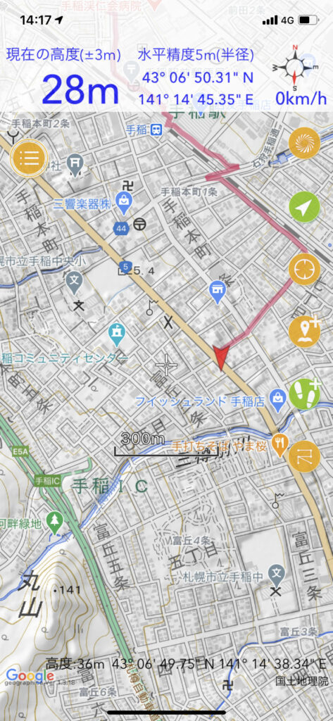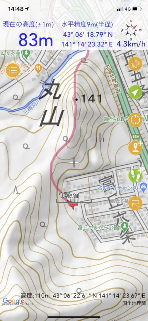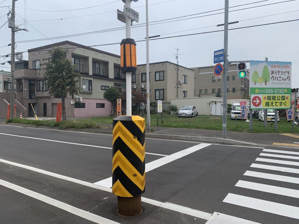 ▼石狩手稲通りの跨線橋から丸山が見えてきた。丸山は左側の手前のかすんでない小さなやまである。