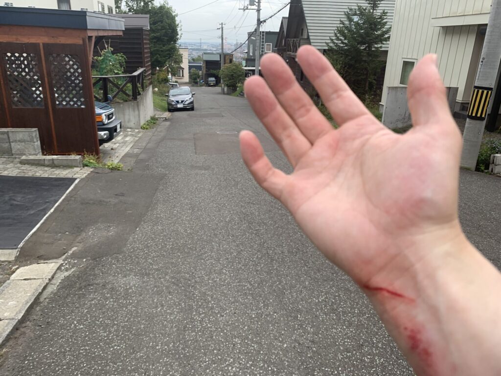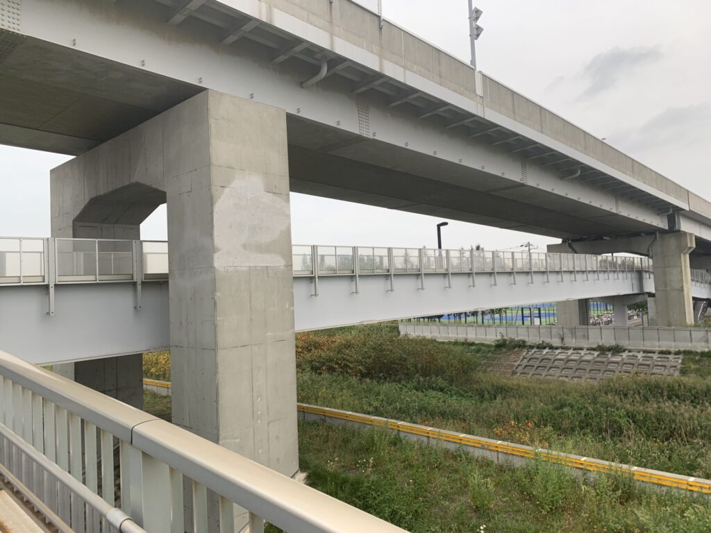 ▼この丸い護床ブロックを伝って、渡った先のステップを登る。