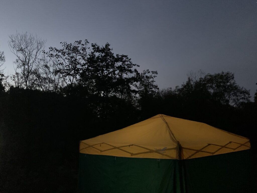 ▼午前5時起床。 キャプテンスタッグの由緒あるテント!
