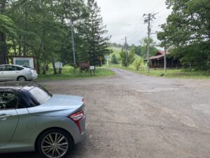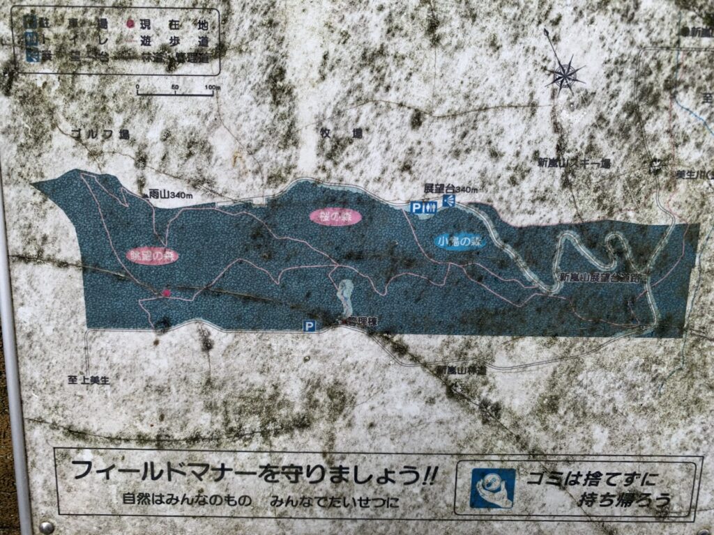 ▼嵐山の施設は休館中で駐車場は入れなかったため、向かいの空き地に駐める。