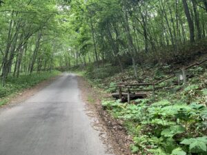 ▼展望台への車道を歩く。何度か車で上った道。