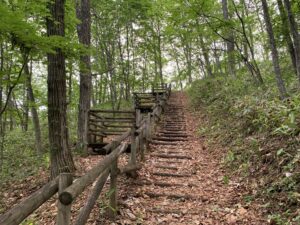 ▼この階段の先が山頂か?