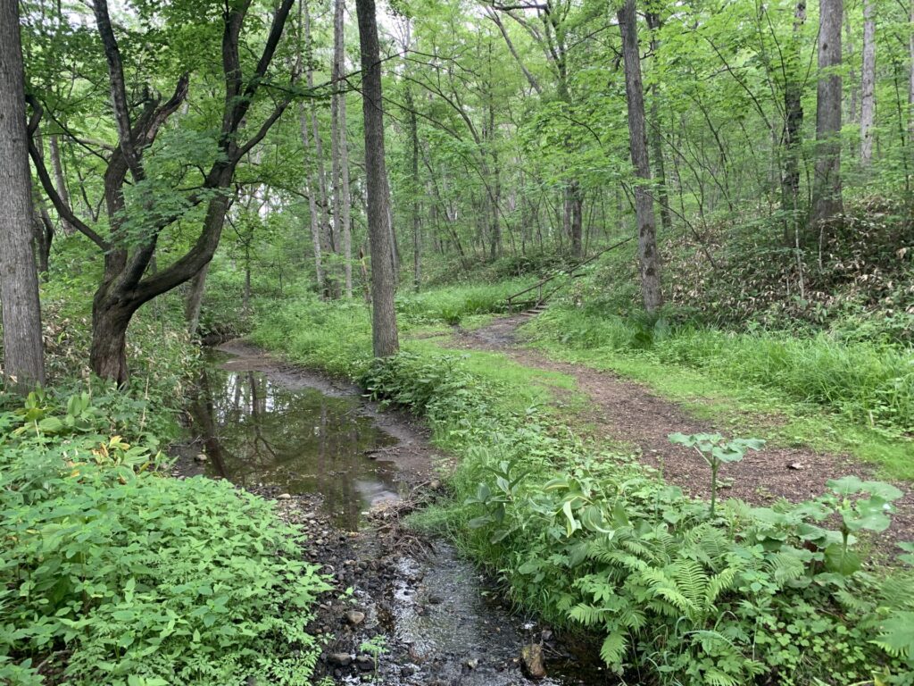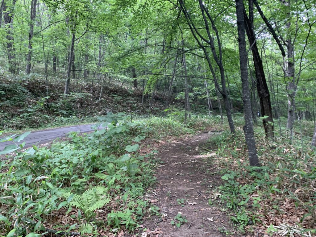 ▼車道と並行して散策路がある。