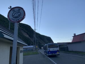 ▼午前7時のバスに乗る予定だったが6時10分に到着してしまった。