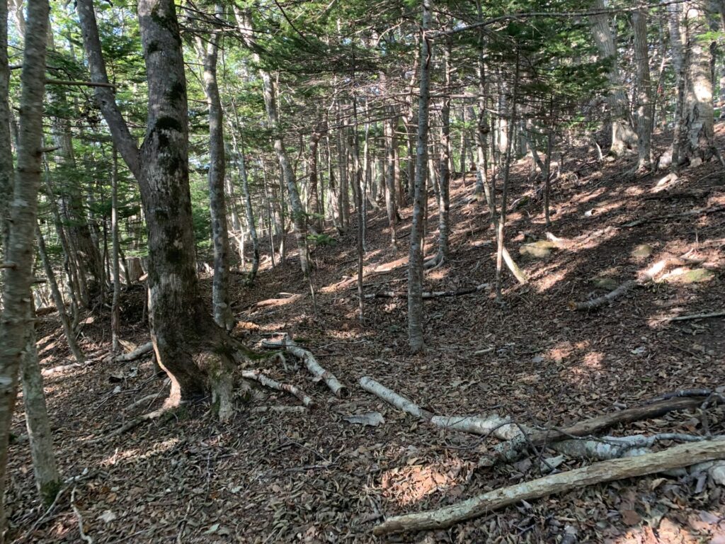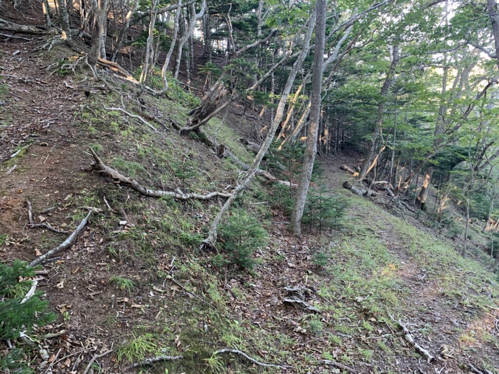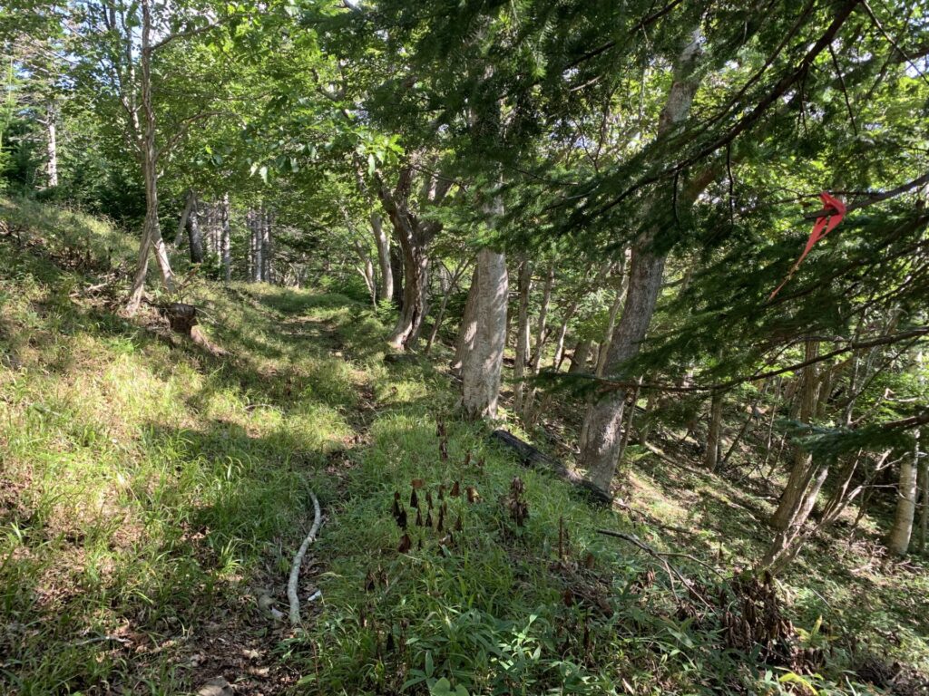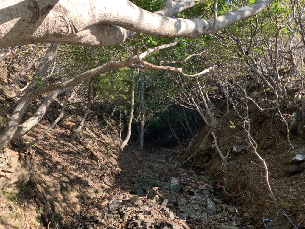▼尾根の最先端の南側にかすかな踏み跡有り!