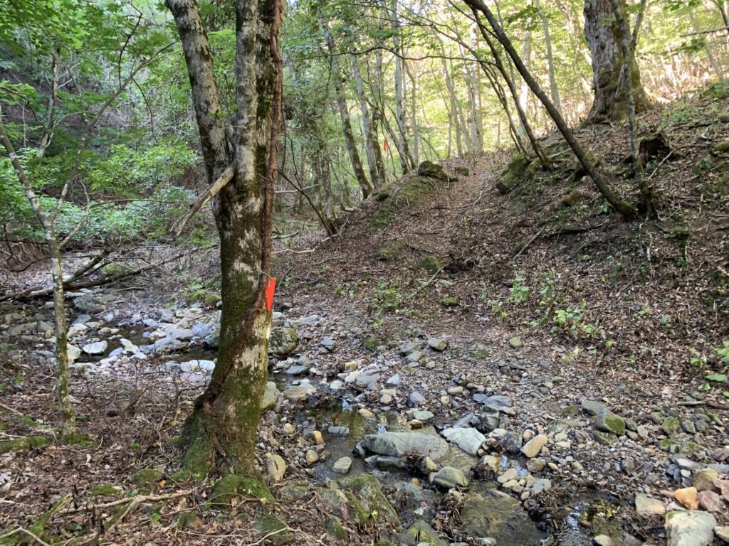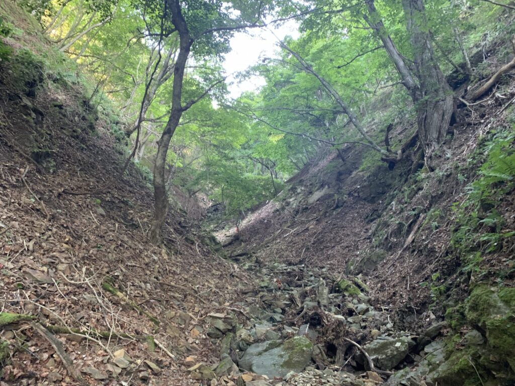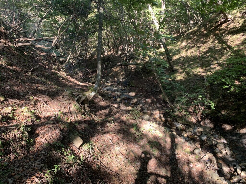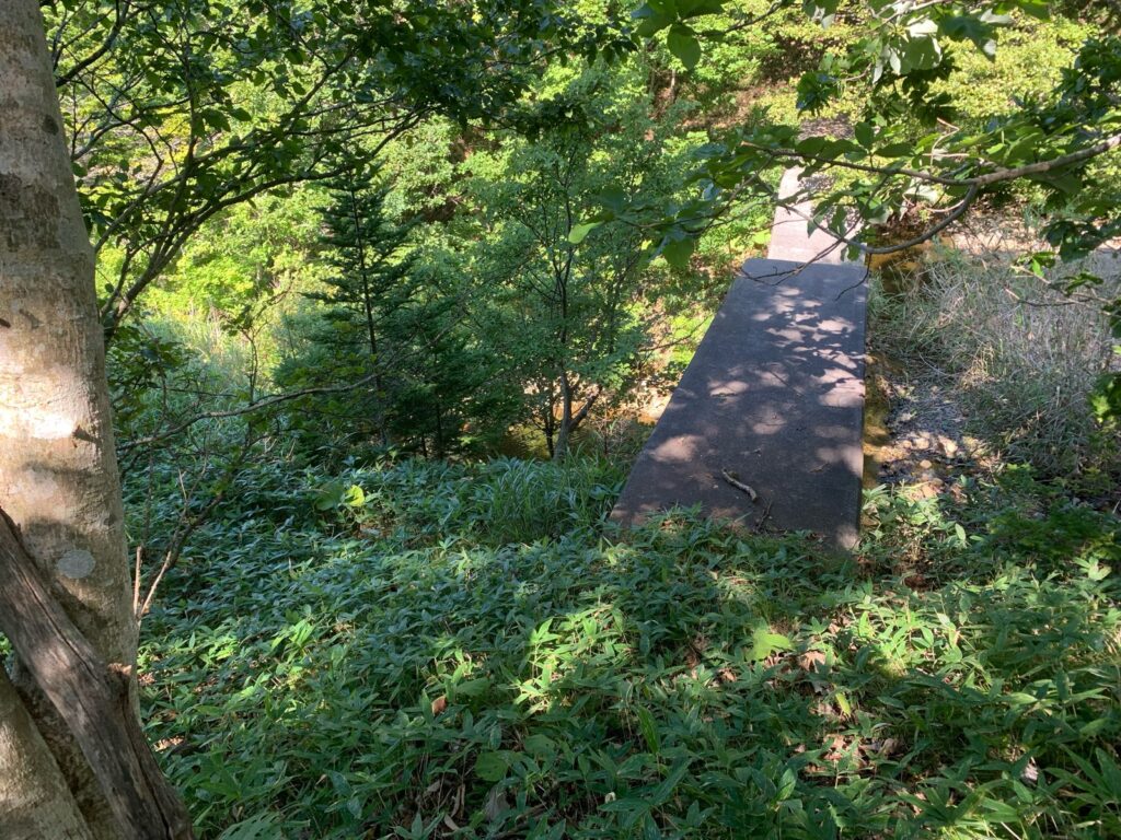 ▼尾根の最先端の南側にかすかな踏み跡有り!