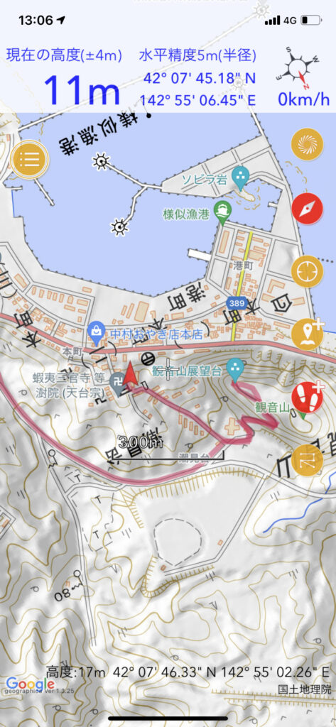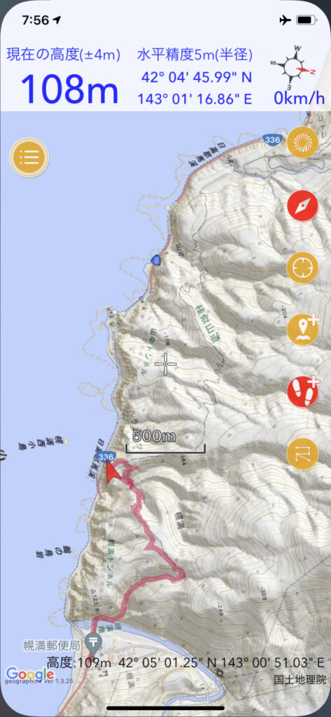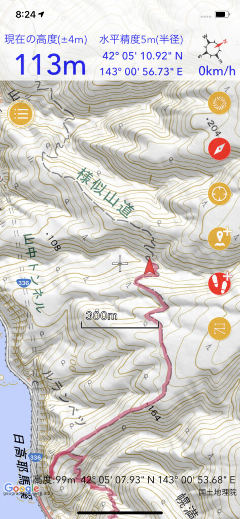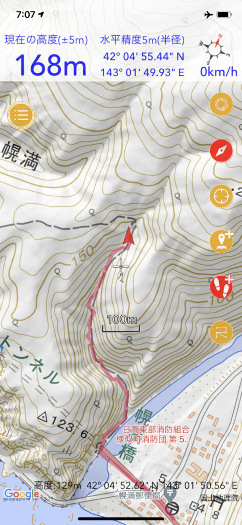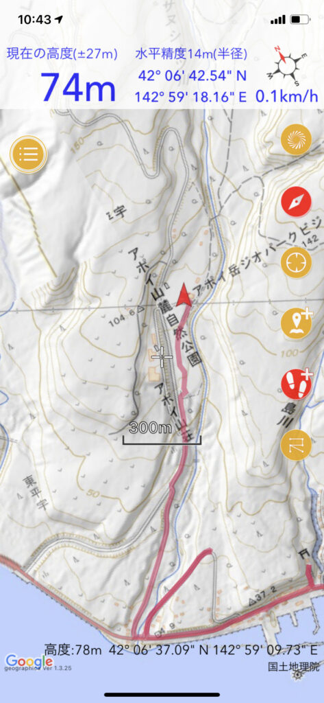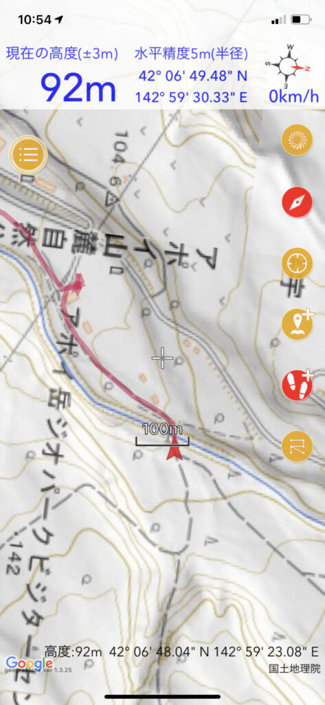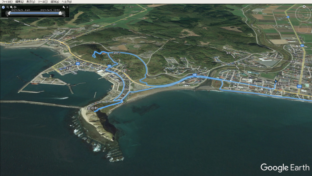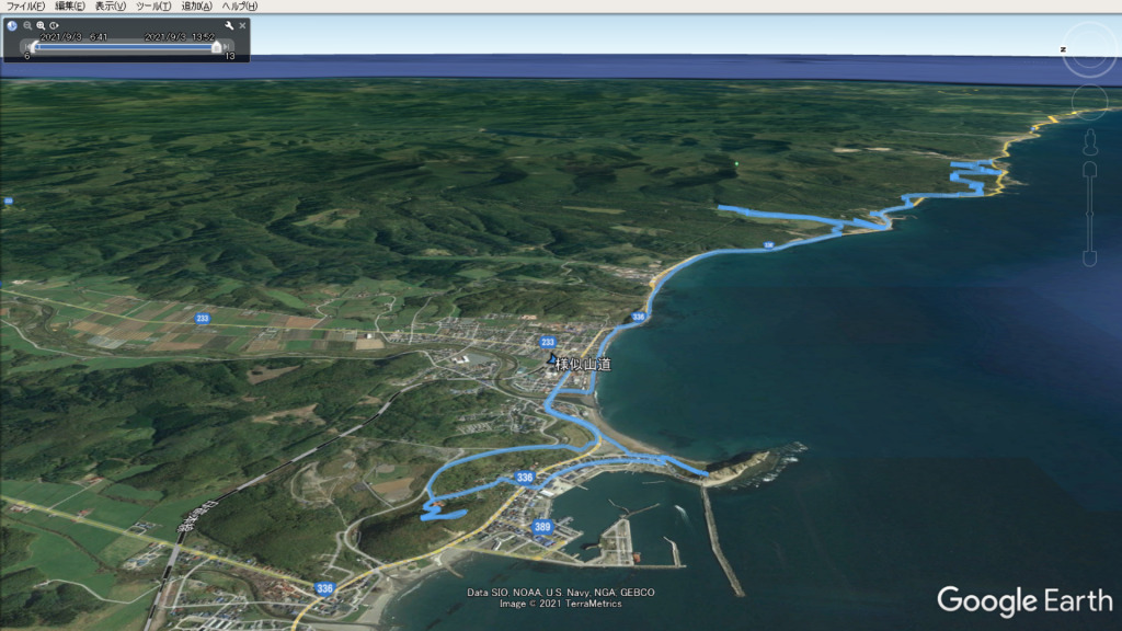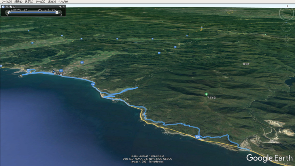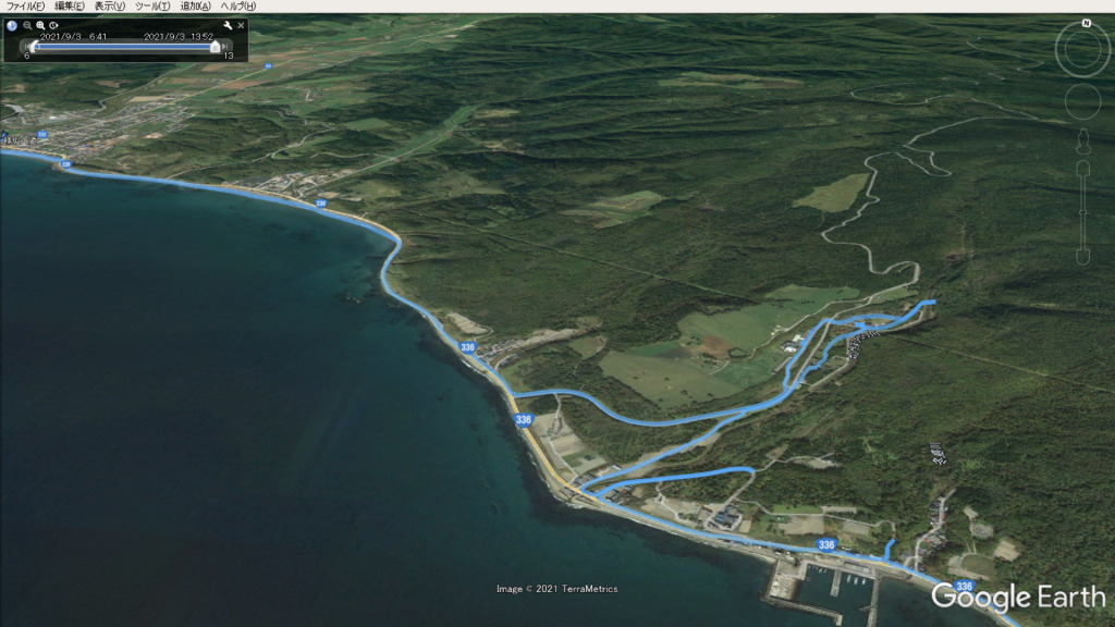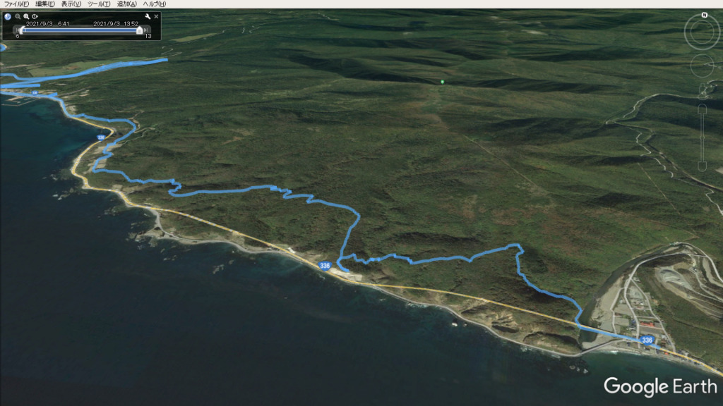 ▼GoogleEarth アポイ岳ジオパークビジターセンター付近。間違えて進んだ道がはっきり!