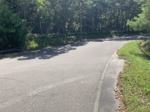 ▼ガードケーブルは、支柱もワイヤーも真新しく白に塗られている。