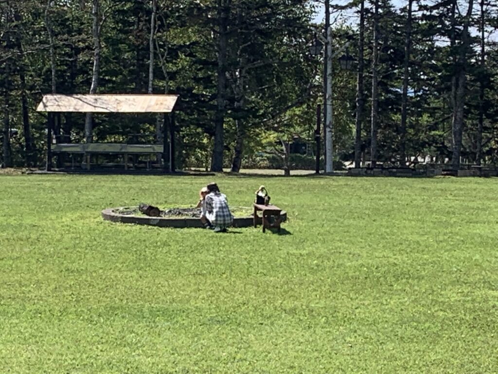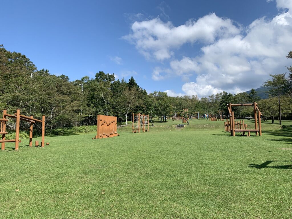 ▼綺麗な芝生。新しそうなアスレチック。そして、鹿のうんこ