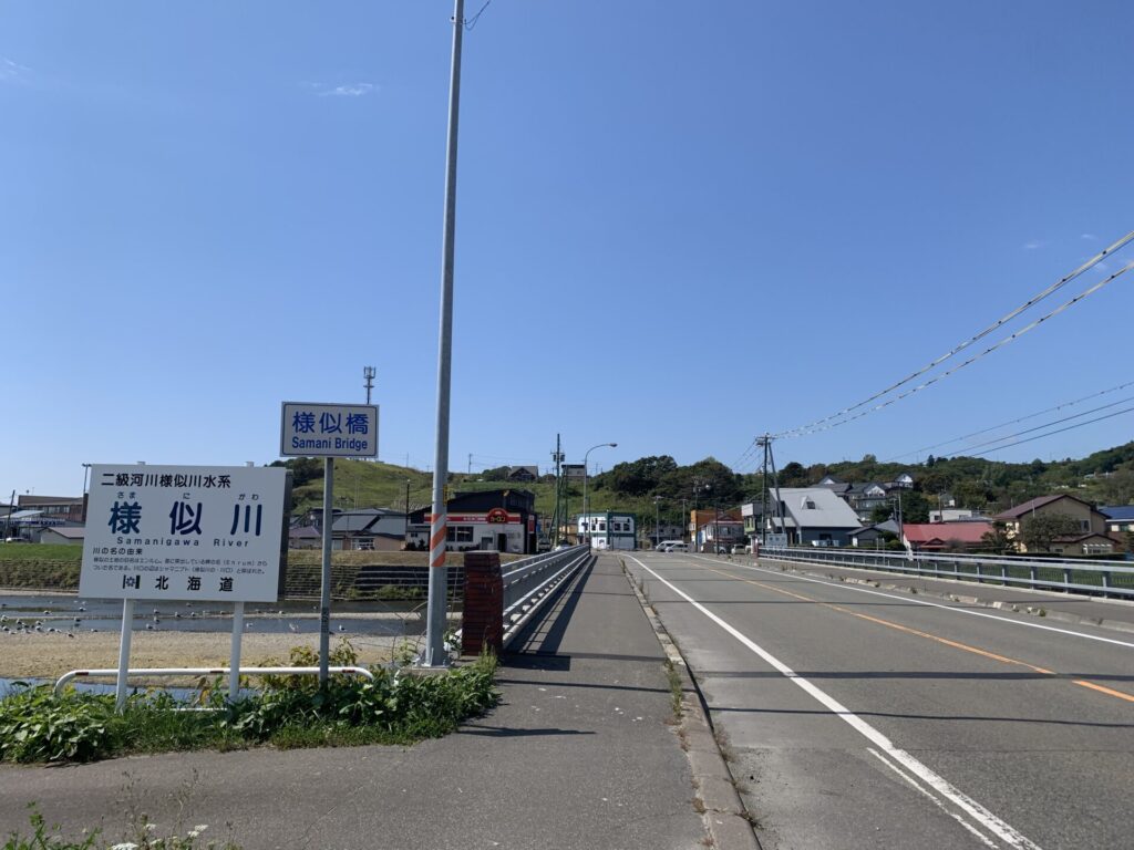 ▼L側に歩道、様似山道の入口はR側のなのだが、橋梁のR側の防護柵に降りてゆく切れ目が無いようだが???