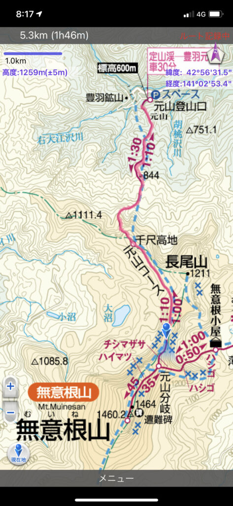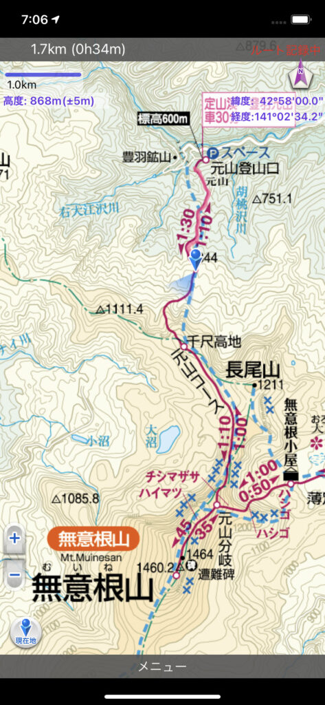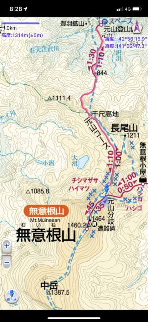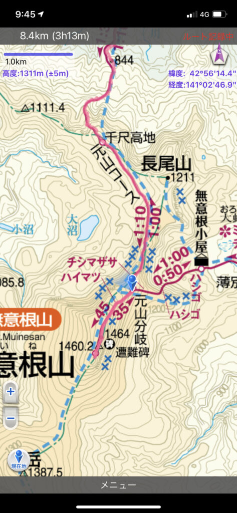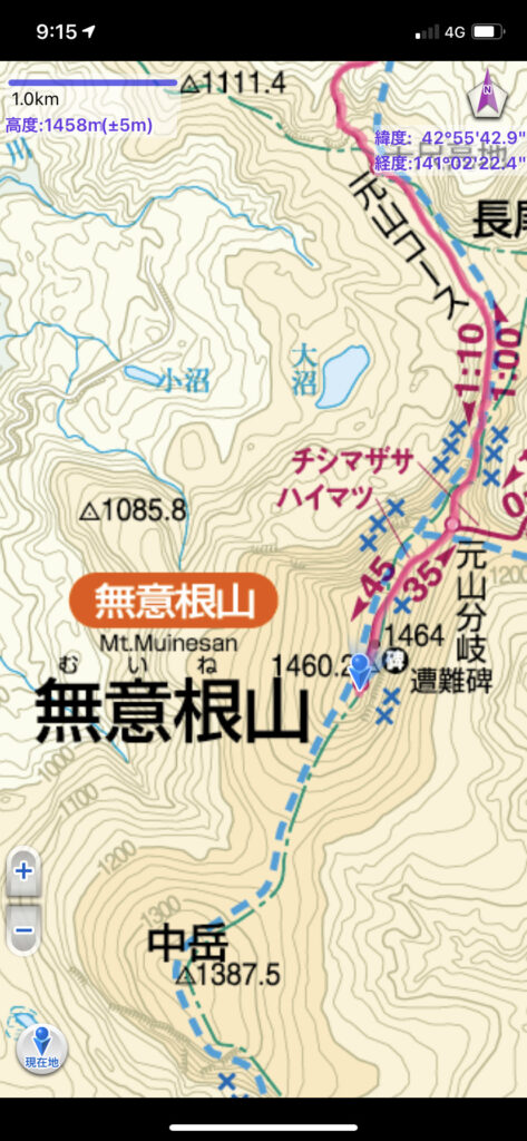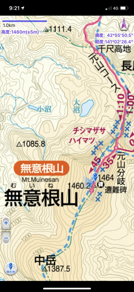 ▼少し進んで無意根山旧山頂(旧山頂なのはあとで知った)