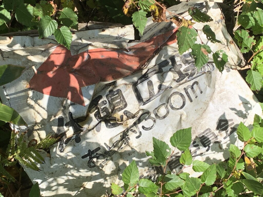 ▼相当古い標識 ×印の方向には踏み跡はすでに無い。